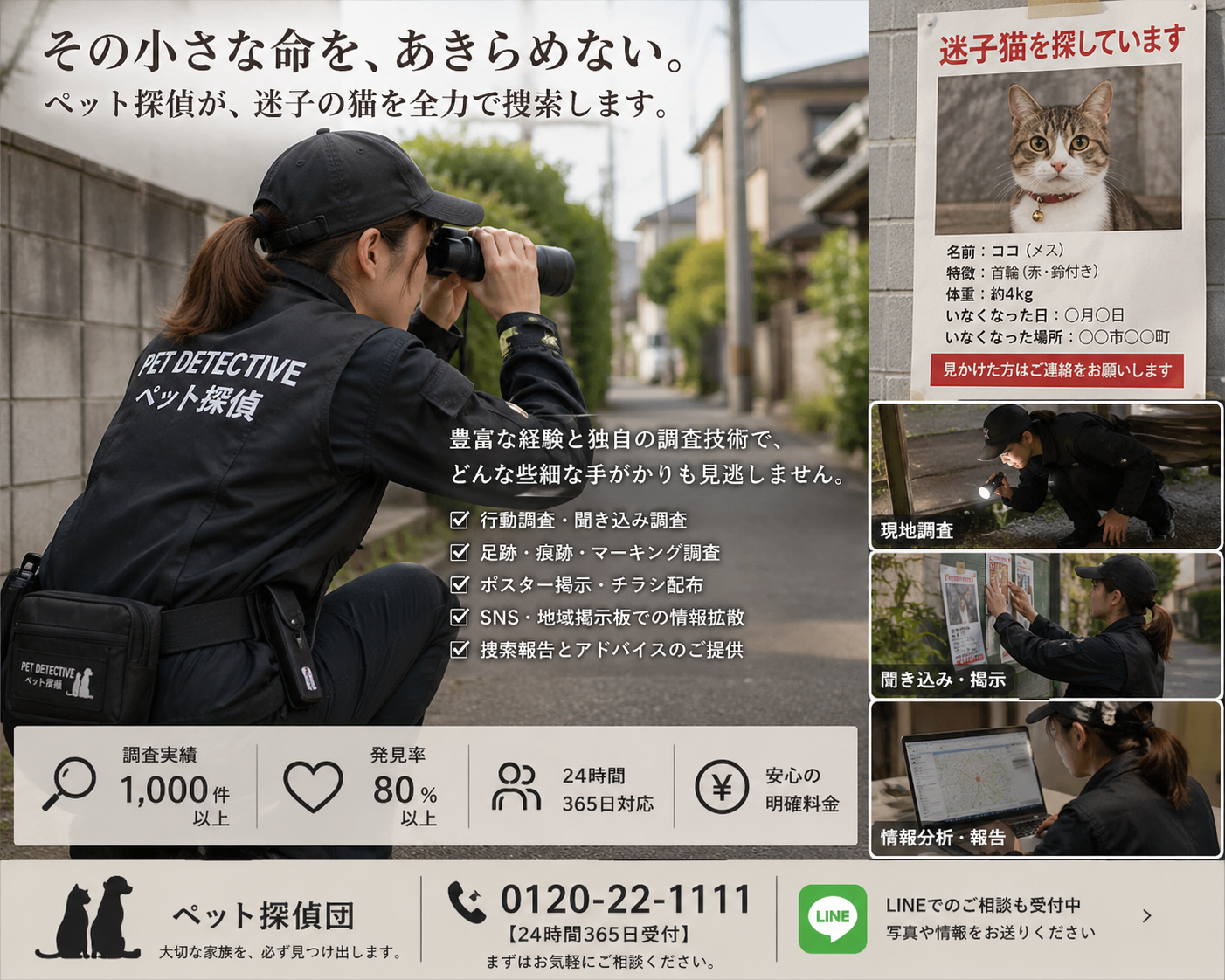 ペット探偵は「闇雲に探す」のではなく、行動分析 × 現地調査 × 情報戦で発見につなげる仕事です。